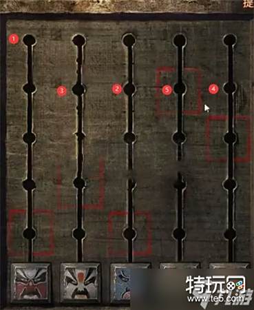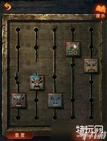 2、接着走近能够看见盒子上的机关,需要玩家将脸谱按照顺序排列。